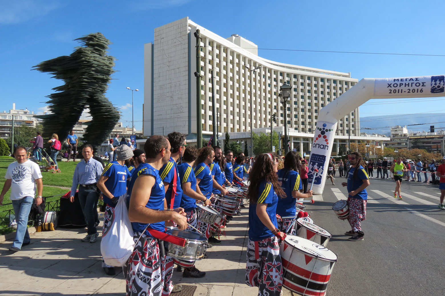 The city of Athens celebrates today. More than 30.000 runners participate. The community responds, greets the runners warmly, cheers them with bravos and applause. The sun is warm, the sky is blue. The strongest scenes I witness resist to be photographed or to be put into words.